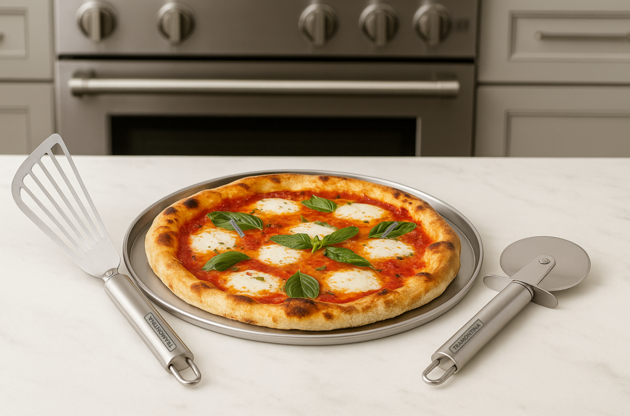Assar a pizza, cortar sem esforço, servir bonito. É praticidade que libera tempo pra estar junto, rir, conversar e aproveitar a mesa.